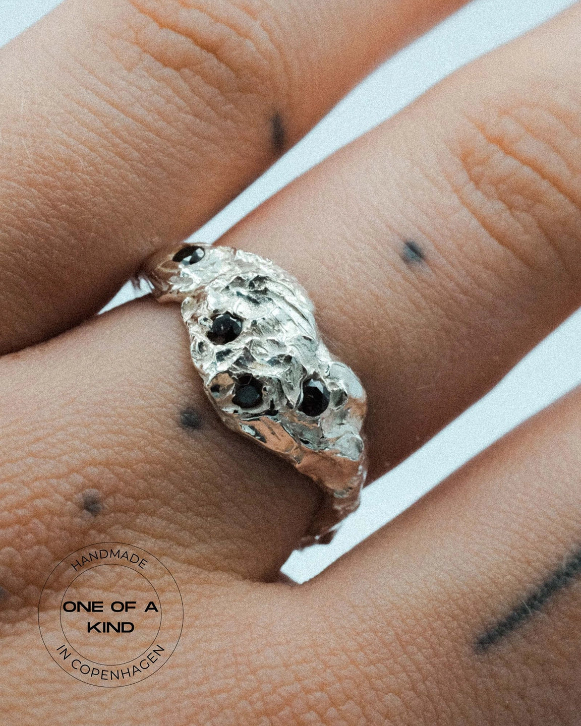 Her finder du de helt særlige ringe, der kun findes i ét eneste eksemplar. Hver ring er håndlavet i vores studio og sat sammen med udvalgte sten, vi kun har én af hver ring. Det betyder, at ingen ringe er ens – og når en er solgt, kommer den aldrig igen.